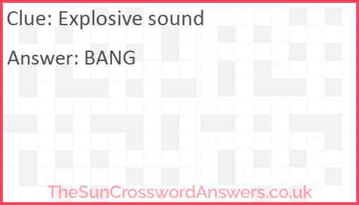 Explosive sound is a crossword clue for which we have 1 possible answer and we have spotted 5 times in our database. This crossword clue was last seen on 24 April 2024 in The Sun Coffee Time Crossword puzzle!