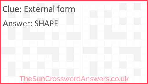 External form is a crossword clue for which we have 1 possible answer and we have spotted 9 times in our database. This crossword clue was last seen on 07 November 2024 in The Sun Coffee Time Crossword puzzle!