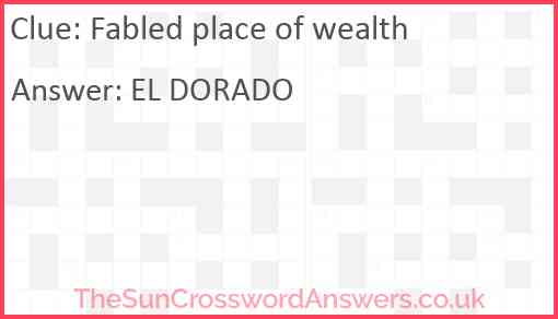 Fabled place of wealth is a crossword clue for which we have 2 possible answer and we have spotted 2 times in our database. This crossword clue was last seen on 05 November 2021 in The Sun Coffee Time Crossword puzzle!