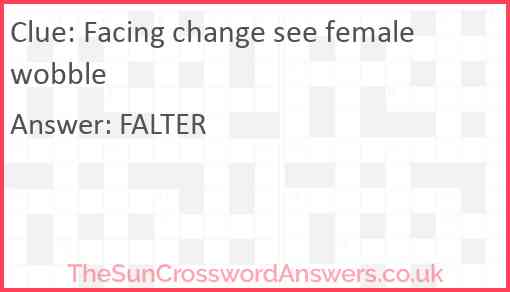Facing change see female wobble is a crossword clue for which we have 1 possible answer and we have spotted 2 times in our database. This crossword clue was last seen on 29 July 2025 in The Sun Cryptic Crossword puzzle!
