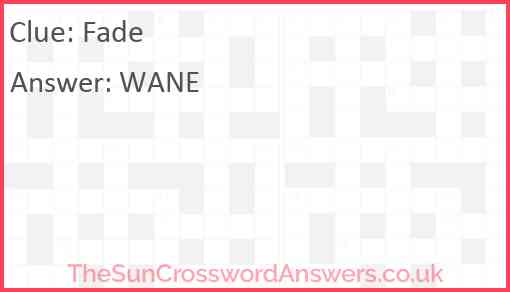 Fade is a crossword clue for which we have 1 possible answer and we have spotted 1 times in our database. This crossword clue was last seen on 18 September 2024 in The Sun Coffee Time Crossword puzzle!