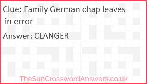Family German chap leaves in error is a crossword clue for which we have 1 possible answer and we have spotted 2 times in our database. This crossword clue was last seen on 14 July 2022 in The Sun Cryptic Crossword puzzle!