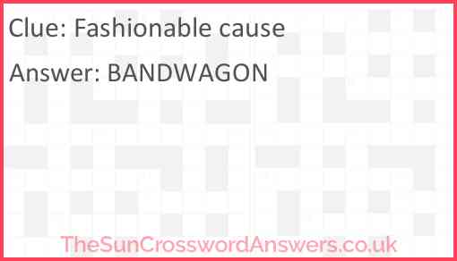 Fashionable cause is a crossword clue for which we have 1 possible answer and we have spotted 4 times in our database. This crossword clue was last seen on 23 March 2025 in The Sun Coffee Time Crossword puzzle!
