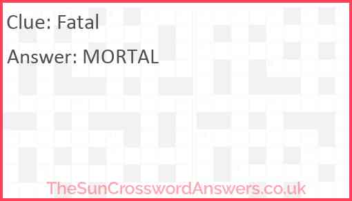 Fatal is a crossword clue for which we have 2 possible answer and we have spotted 2 times in our database. This crossword clue was last seen on 31 May 2024 in The Sun Coffee Time Crossword puzzle!