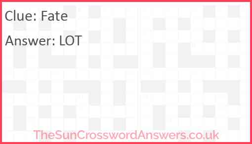 Fate is a crossword clue for which we have 2 possible answer and we have spotted 10 times in our database. This crossword clue was last seen on 15 August 2023 in The Sun Coffee Time Crossword puzzle!