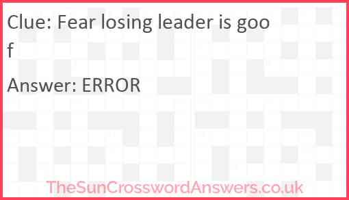 Fear losing leader is goof is a crossword clue for which we have 1 possible answer and we have spotted 2 times in our database. This crossword clue was last seen on 09 February 2025 in The Sun Cryptic Crossword puzzle!