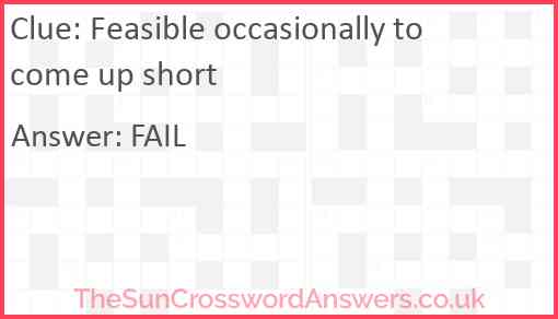 Feasible occasionally to come up short is a crossword clue for which we have 1 possible answer and we have spotted 1 times in our database. This crossword clue was last seen on 01 October 2023 in The Sun Cryptic Crossword puzzle!