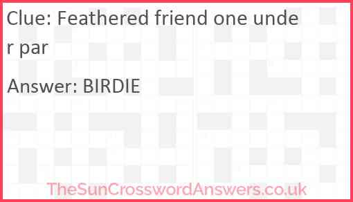 Feathered friend one under par is a crossword clue for which we have 1 possible answer and we have spotted 3 times in our database. This crossword clue was last seen on 30 July 2022 in The Sun Cryptic Crossword puzzle!