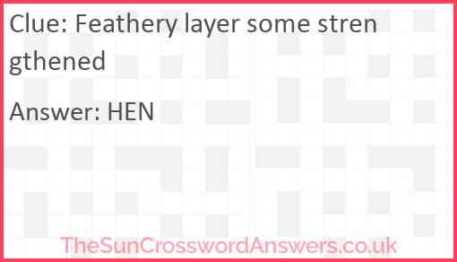 Feathery layer some strengthened is a crossword clue for which we have 1 possible answer and we have spotted 3 times in our database. This crossword clue was last seen on 01 June 2023 in The Sun Cryptic Crossword puzzle!