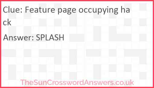 Feature page occupying hack is a crossword clue for which we have 1 possible answer and we have spotted 1 times in our database. This crossword clue was last seen on 23 October 2022 in The Sun Cryptic Crossword puzzle!