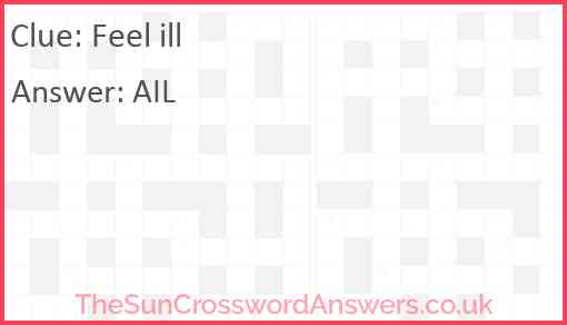 Feel ill is a crossword clue for which we have 1 possible answer and we have spotted 1 times in our database. This crossword clue was last seen on 29 January 2021 in The Sun Coffee Time Crossword puzzle!
