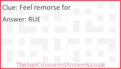 Feel remorse for is a crossword clue for which we have 1 possible answer and we have spotted 14 times in our database. This crossword clue was last seen on 30 November 2024 in The Sun Coffee Time Crossword puzzle!