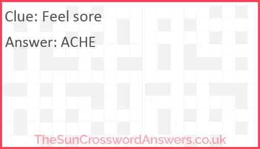 Feel sore is a crossword clue for which we have 1 possible answer and we have spotted 1 times in our database. This crossword clue was last seen on 08 September 2019 in The Sun Coffee Time Crossword puzzle!