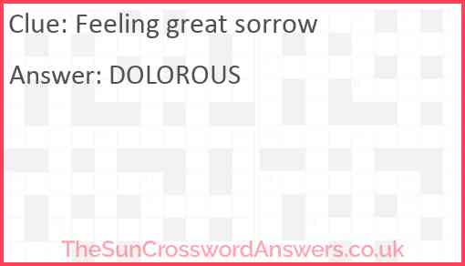 Feeling great sorrow is a crossword clue for which we have 1 possible answer and we have spotted 1 times in our database. This crossword clue was last seen on 04 June 2023 in The Sun Coffee Time Crossword puzzle!