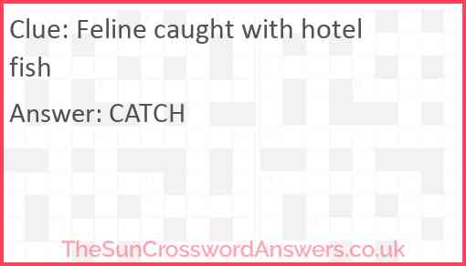 Feline caught with hotel fish is a crossword clue for which we have 1 possible answer and we have spotted 4 times in our database. This crossword clue was last seen on 06 August 2023 in The Sun Cryptic Crossword puzzle!
