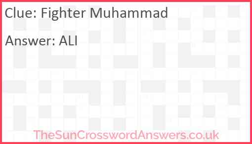 Fighter Muhammad is a crossword clue for which we have 1 possible answer and we have spotted 1 times in our database. This crossword clue was last seen on 05 January 2025 in The Sun Coffee Time Crossword puzzle!