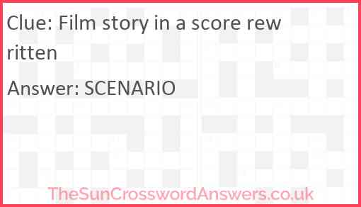 Film story in a score rewritten is a crossword clue for which we have 1 possible answer and we have spotted 2 times in our database. This crossword clue was last seen on 01 September 2023 in The Sun Cryptic Crossword puzzle!