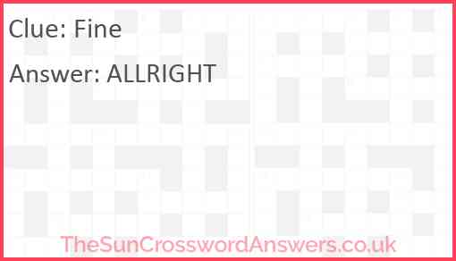 Fine is a crossword clue for which we have 1 possible answer and we have spotted 4 times in our database. This crossword clue was last seen on 07 February 2025 in The Sun Coffee Time Crossword puzzle!
