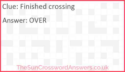 Finished crossing is a crossword clue for which we have 1 possible answer and we have spotted 1 times in our database. This crossword clue was last seen on 14 August 2019 in The Sun Cryptic Crossword puzzle!