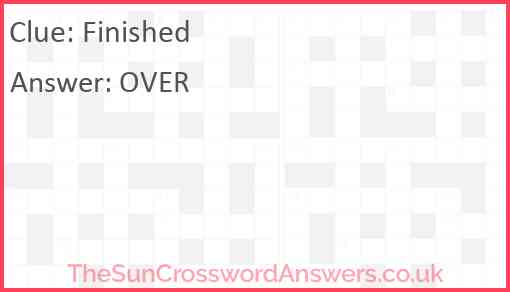 Finished is a crossword clue for which we have 1 possible answer and we have spotted 6 times in our database. This crossword clue was last seen on 05 October 2022 in The Sun Coffee Time Crossword puzzle!