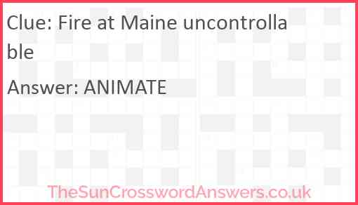 Fire at Maine uncontrollable is a crossword clue for which we have 1 possible answer and we have spotted 2 times in our database. This crossword clue was last seen on 24 January 2024 in The Sun Cryptic Crossword puzzle!