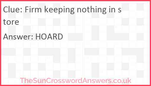Firm keeping nothing in store is a crossword clue for which we have 1 possible answer and we have spotted 2 times in our database. This crossword clue was last seen on 29 October 2022 in The Sun Cryptic Crossword puzzle!