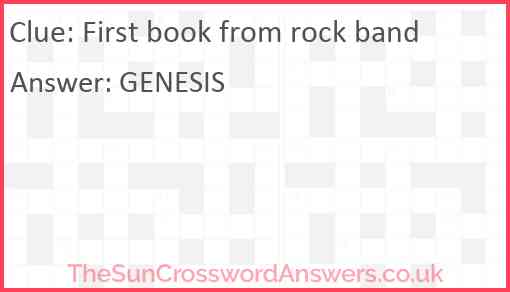 First book from rock band is a crossword clue for which we have 1 possible answer and we have spotted 2 times in our database. This crossword clue was last seen on 05 August 2024 in The Sun Cryptic Crossword puzzle!