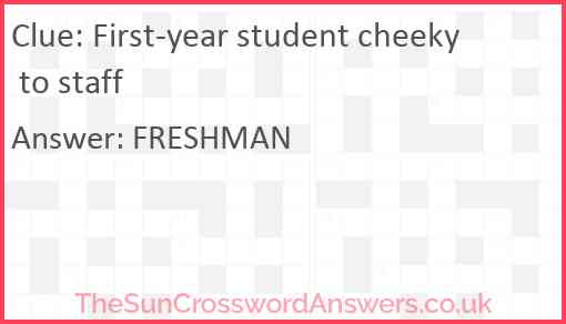 First-year student cheeky to staff is a crossword clue for which we have 1 possible answer and we have spotted 2 times in our database. This crossword clue was last seen on 28 February 2025 in The Sun Cryptic Crossword puzzle!