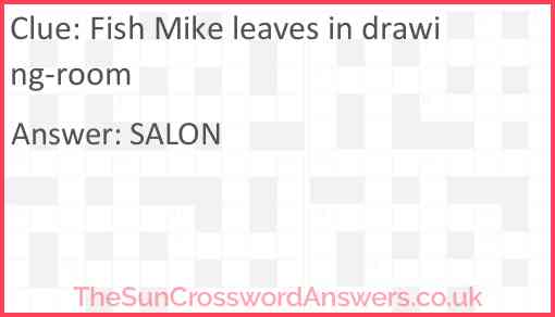 Fish Mike leaves in drawing-room is a crossword clue for which we have 1 possible answer and we have spotted 3 times in our database. This crossword clue was last seen on 31 May 2024 in The Sun Cryptic Crossword puzzle!