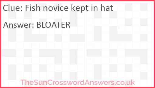 Fish novice kept in hat is a crossword clue for which we have 1 possible answer and we have spotted 2 times in our database. This crossword clue was last seen on 14 August 2023 in The Sun Cryptic Crossword puzzle!