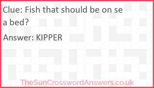 Fish that should be on sea bed? is a crossword clue for which we have 1 possible answer and we have spotted 1 times in our database. This crossword clue was last seen on 15 May 2022 in The Sun Cryptic Crossword puzzle!