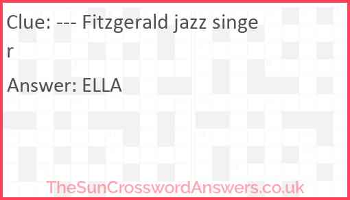--- Fitzgerald jazz singer is a crossword clue for which we have 1 possible answer and we have spotted 1 times in our database. This crossword clue was last seen on 03 May 2019 in The Sun Coffee Time Crossword puzzle!