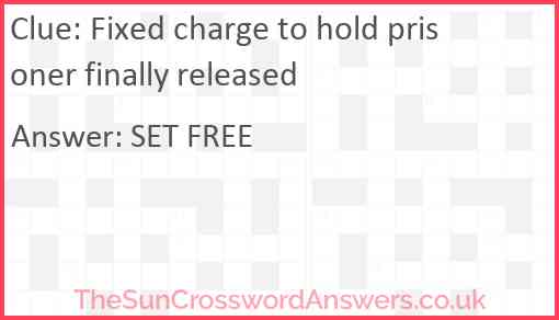 Fixed charge to hold prisoner finally released is a crossword clue for which we have 2 possible answer and we have spotted 2 times in our database. This crossword clue was last seen on 19 January 2024 in The Sun Cryptic Crossword puzzle!