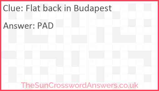 Flat back in Budapest is a crossword clue for which we have 1 possible answer and we have spotted 1 times in our database. This crossword clue was last seen on 10 February 2021 in The Sun Cryptic Crossword puzzle!