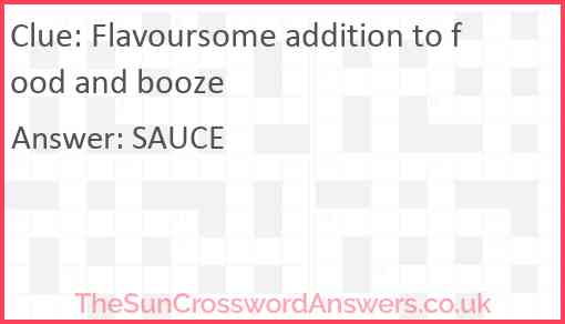 Flavoursome addition to food and booze is a crossword clue for which we have 1 possible answer and we have spotted 3 times in our database. This crossword clue was last seen on 29 July 2025 in The Sun Cryptic Crossword puzzle!