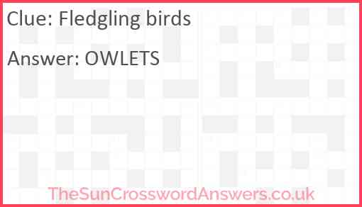 Fledgling birds is a crossword clue for which we have 1 possible answer and we have spotted 1 times in our database. This crossword clue was last seen on 02 July 2019 in The Sun Coffee Time Crossword puzzle!