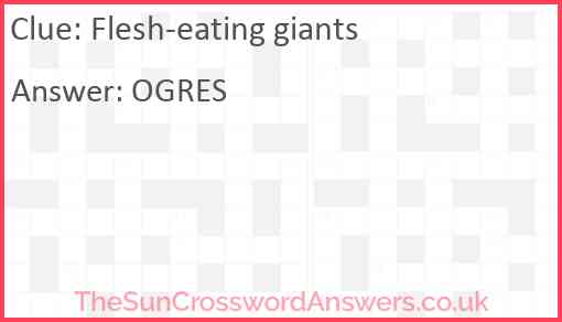 Flesh-eating giants is a crossword clue for which we have 1 possible answer and we have spotted 2 times in our database. This crossword clue was last seen on 10 February 2025 in The Sun Coffee Time Crossword puzzle!
