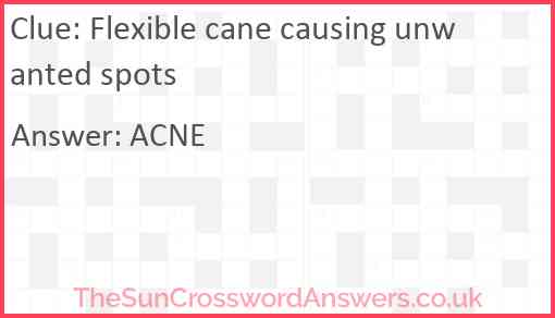 Flexible cane causing unwanted spots is a crossword clue for which we have 1 possible answer and we have spotted 1 times in our database. This crossword clue was last seen on 21 March 2025 in The Sun Cryptic Crossword puzzle!
