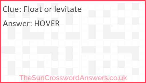 Float or levitate is a crossword clue for which we have 1 possible answer and we have spotted 2 times in our database. This crossword clue was last seen on 04 July 2023 in The Sun Coffee Time Crossword puzzle!