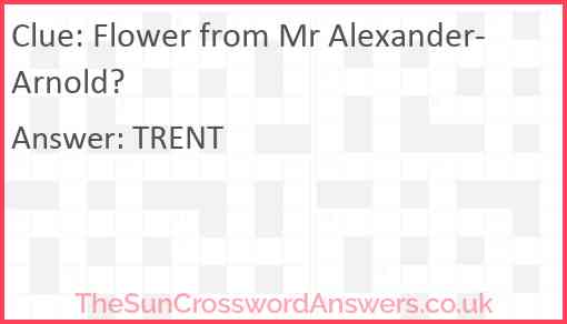 Flower from Mr Alexander-Arnold? is a crossword clue for which we have 1 possible answer and we have spotted 2 times in our database. This crossword clue was last seen on 30 June 2023 in The Sun Cryptic Crossword puzzle!