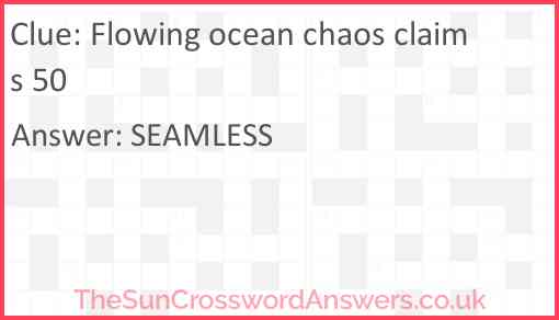 Flowing ocean chaos claims 50 is a crossword clue for which we have 1 possible answer and we have spotted 3 times in our database. This crossword clue was last seen on 26 March 2024 in The Sun Cryptic Crossword puzzle!