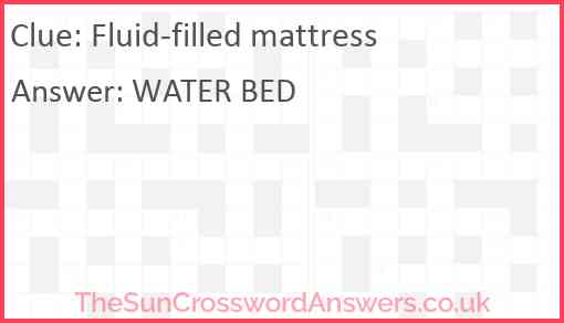 Fluid-filled mattress is a crossword clue for which we have 2 possible answer and we have spotted 2 times in our database. This crossword clue was last seen on 21 November 2023 in The Sun Coffee Time Crossword puzzle!