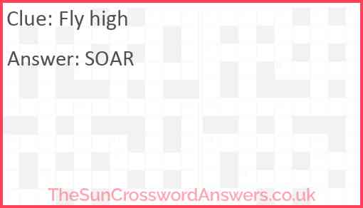 Fly high is a crossword clue for which we have 1 possible answer and we have spotted 2 times in our database. This crossword clue was last seen on 30 November 2024 in The Sun Coffee Time Crossword puzzle!