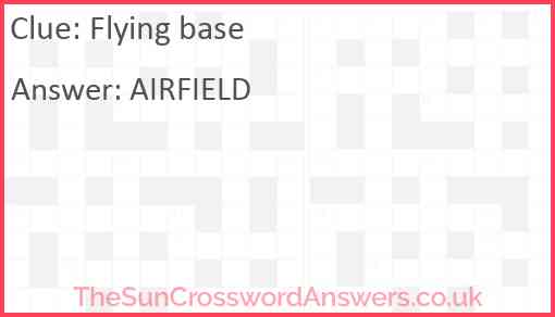 Flying base is a crossword clue for which we have 1 possible answer and we have spotted 3 times in our database. This crossword clue was last seen on 25 September 2022 in The Sun Coffee Time Crossword puzzle!