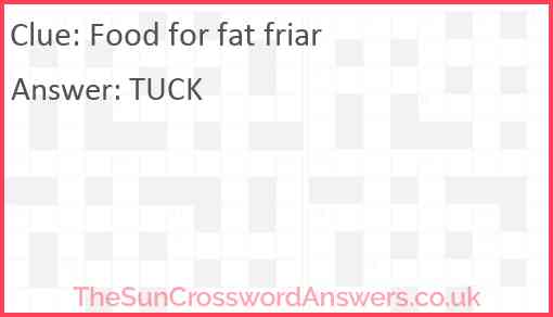 Food for fat friar is a crossword clue for which we have 1 possible answer and we have spotted 1 times in our database. This crossword clue was last seen on 28 July 2020 in The Sun Cryptic Crossword puzzle!