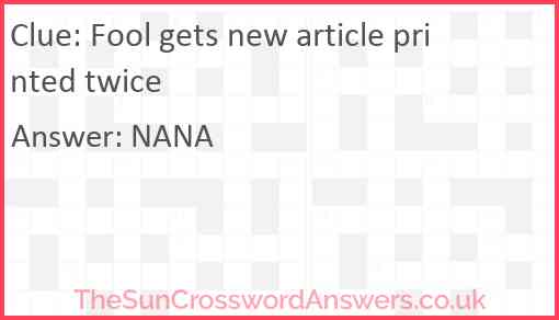 Fool gets new article printed twice is a crossword clue for which we have 1 possible answer and we have spotted 1 times in our database. This crossword clue was last seen on 22 March 2022 in The Sun Cryptic Crossword puzzle!