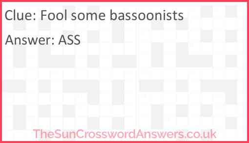 Fool some bassoonists is a crossword clue for which we have 1 possible answer and we have spotted 4 times in our database. This crossword clue was last seen on 24 October 2024 in The Sun Cryptic Crossword puzzle!