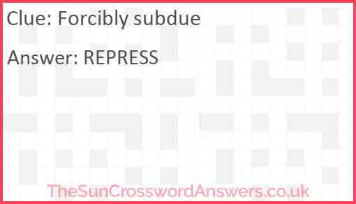 Forcibly subdue is a crossword clue for which we have 1 possible answer and we have spotted 3 times in our database. This crossword clue was last seen on 17 August 2024 in The Sun Coffee Time Crossword puzzle!