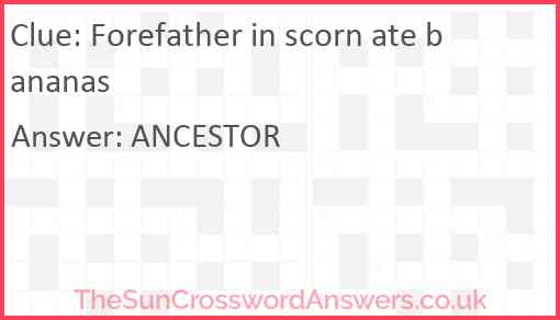 Forefather in scorn ate bananas is a crossword clue for which we have 1 possible answer and we have spotted 2 times in our database. This crossword clue was last seen on 23 October 2022 in The Sun Cryptic Crossword puzzle!