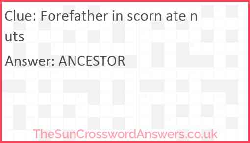 Forefather in scorn ate nuts is a crossword clue for which we have 1 possible answer and we have spotted 1 times in our database. This crossword clue was last seen on 07 February 2022 in The Sun Cryptic Crossword puzzle!